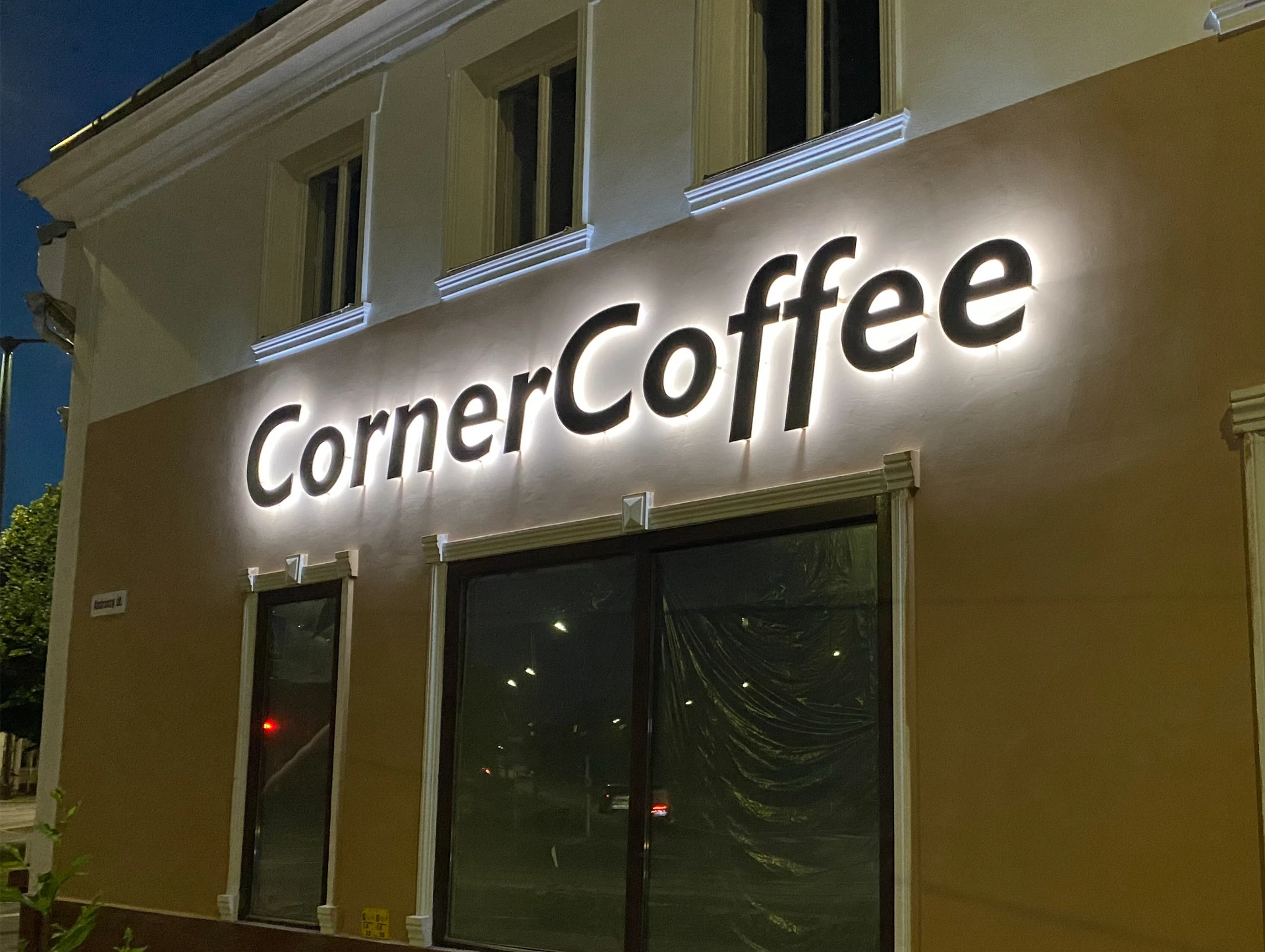 Profil 4. Plasztikus betűk átvilágítható előlappal, plexiből és fémkerettel. Hátulról megvilágítva.